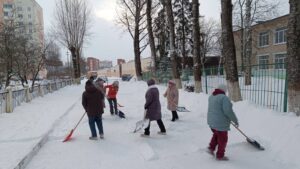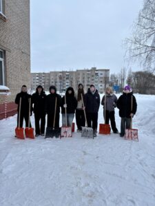 Учащиеся и педагогические работники присоединились к акции по уборке школьной территории от снега
