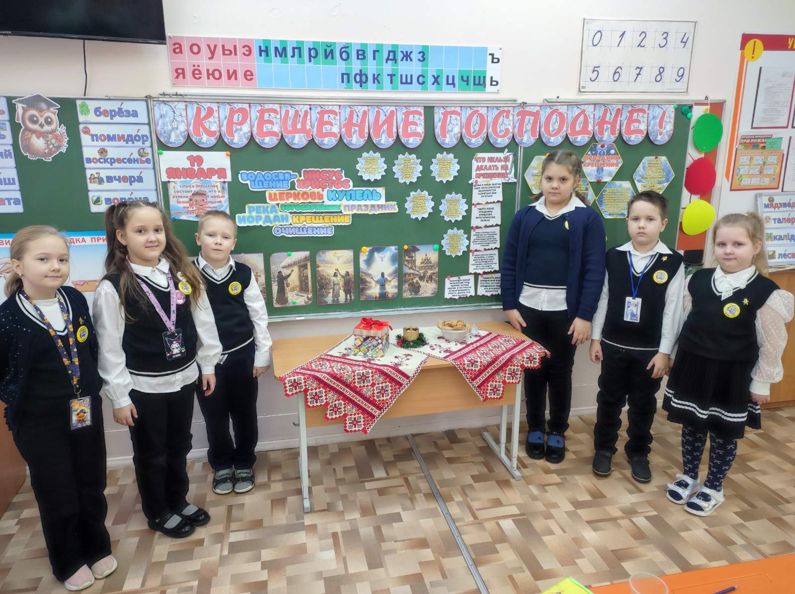 21 января 2025 года для учащихся начальных классов прошло мероприятие «Наши традиции и обычаи: Крещение Господне» с участием настоятеля Свято-Покровского кафедрального собора иерея Бориса Слуцкого.