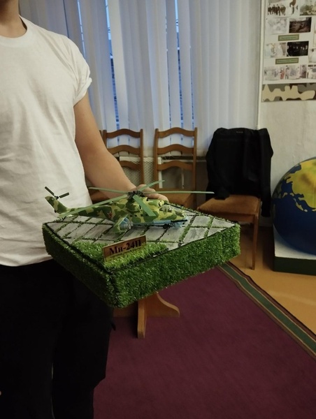 В рамках проекта учащийся 9 «Б » класс Середохов Максим изготовил своими руками макет вертолета МИ -24, который является уменьшенной копией вертолета, на котором совершил подвиг воин интернационалист, выпускник школы С.Спелов. Экспонат займет достойное место в школьном музее. Руководителем проекта является учитель истории Малашонок С.М.