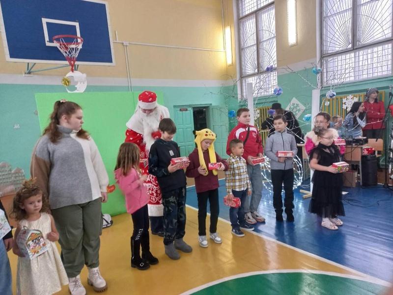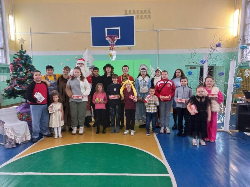 В рамках акции «Наши дети» силами учащихся и педагогов школы подготовлена новогодняя спортивно-развлекательная программа для детей работников школы. Ни один участник не остался без сладкого подарка и веселого новогоднего настроения.