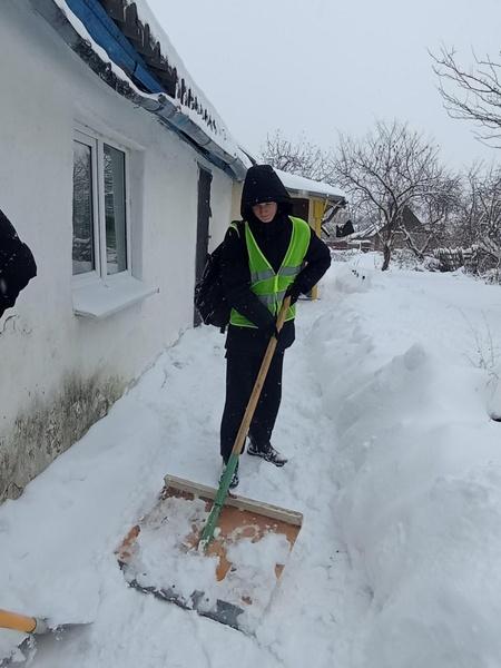 Волонтерский отряд «Луч тепла» помог одиноко проживающей женщине справиться с непогодой как следствие- сохранить чистоту и порядок возле дома.