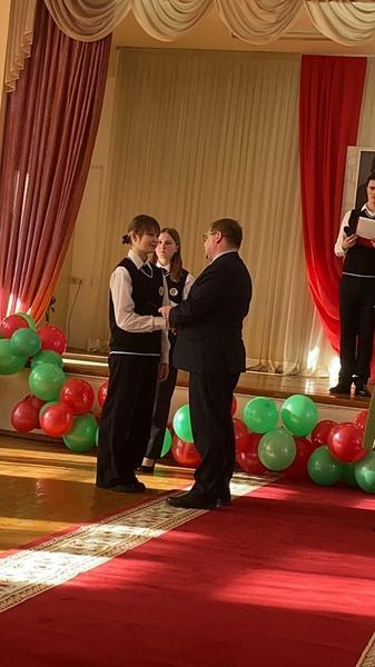 🎉Поздравления со знаменательным событием для десятиклассников прозвучали из уст Граковой Н.Ф., председателя общественной организации «Бывших узников фашизма» и Никитина Л.А., подполковника 103 воздушно-десантной дивизии, заместителя председателя городской организации «Братство».