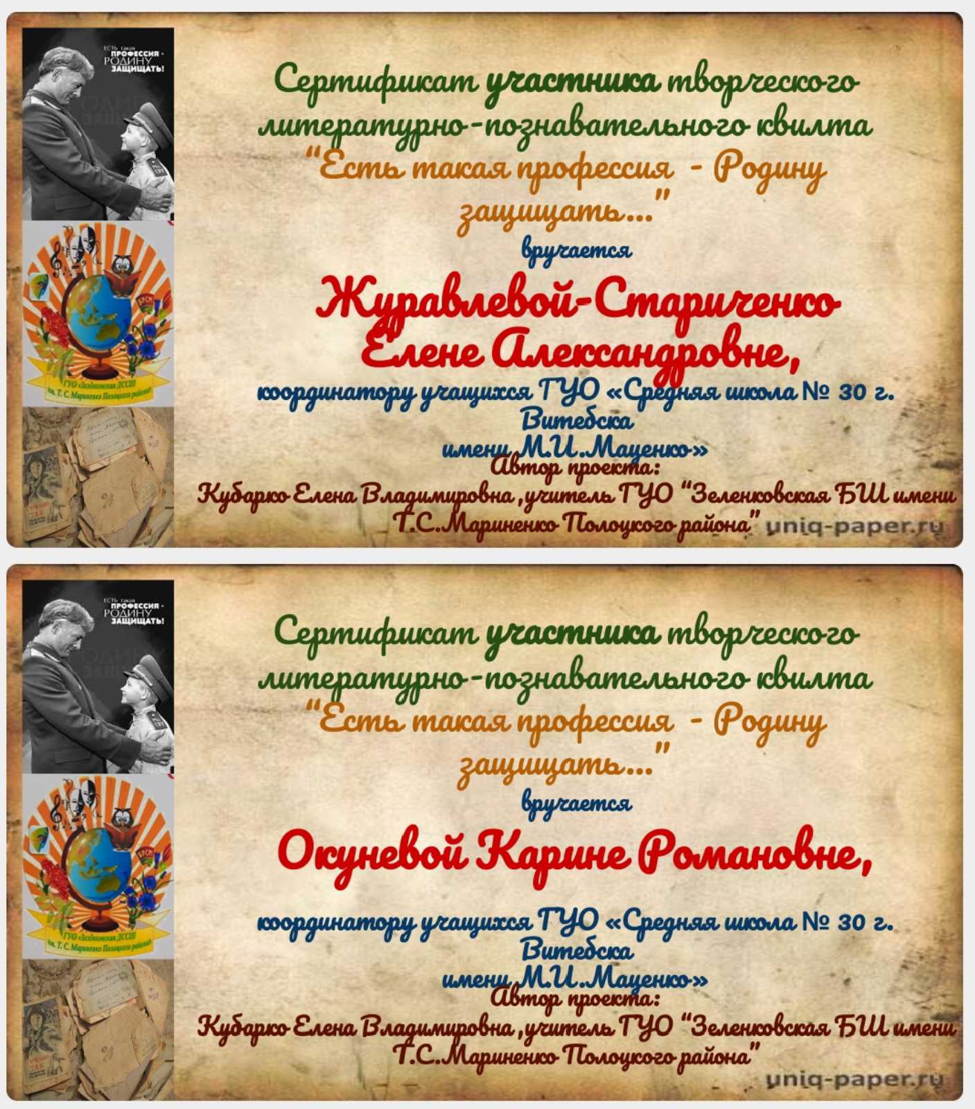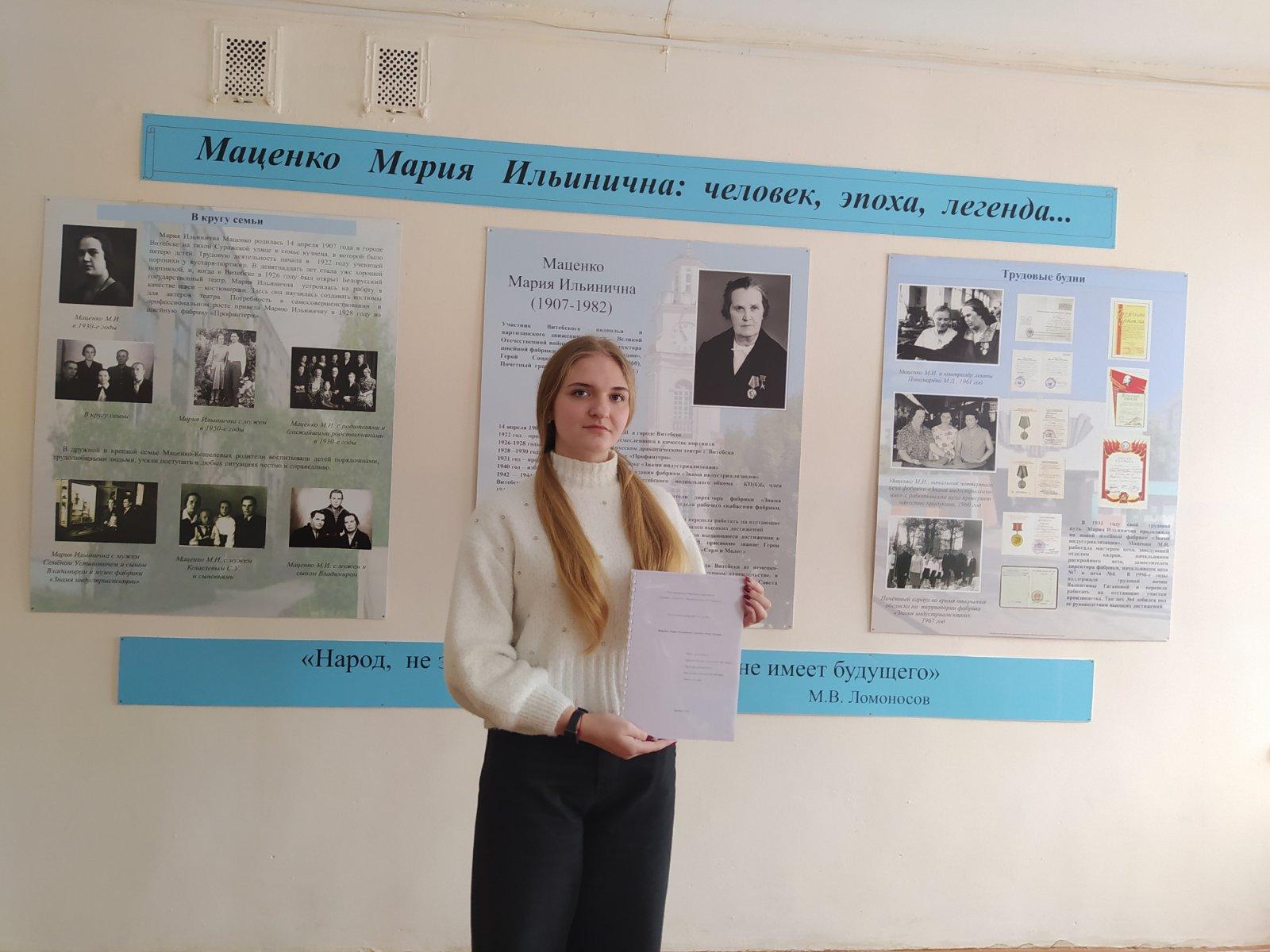 Учащаяся 10 класса приняла участие в конкурсе научно-исследовательских работ по теме «М.И.Маценко: человек, эпоха, легенда»