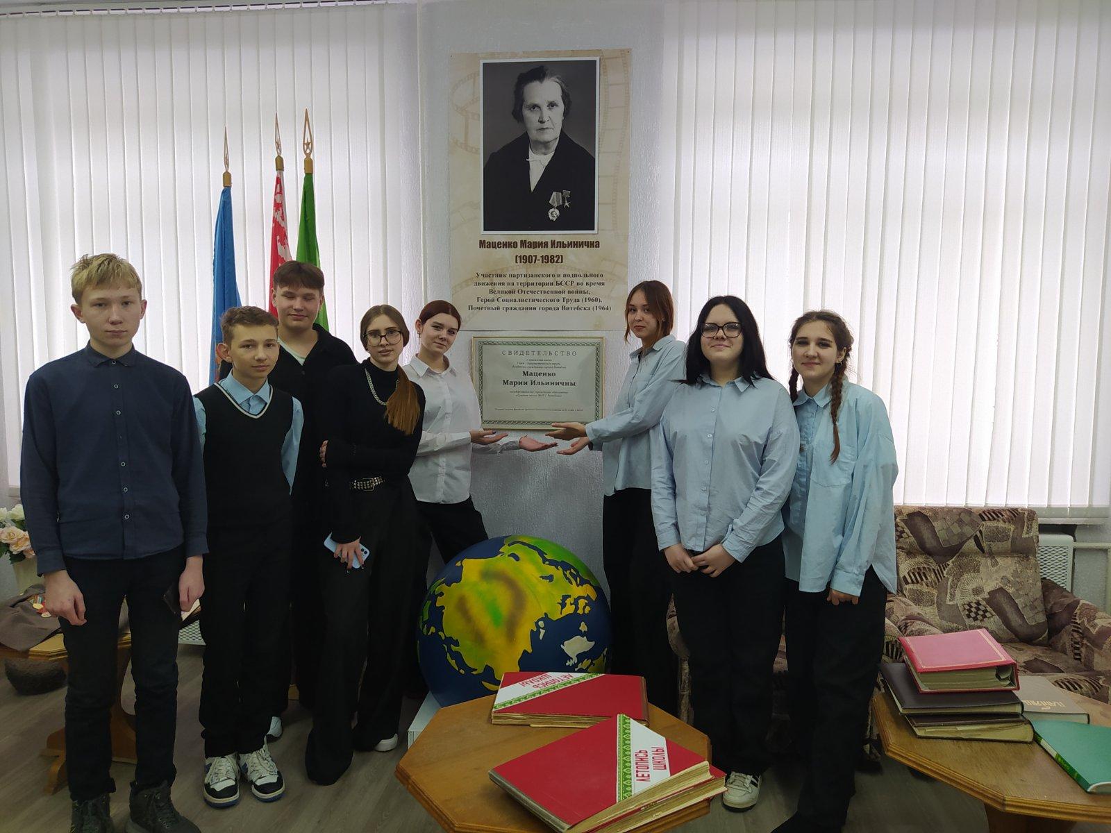 В связи с присвоением средней школе № 30 г. Витебска имени Героя Социалистического труда, почетного гражданина города Маценко М.И. обновленная школьная музейная комната гостеприимно открыла свои двери для посетителей. В музейном кабинете сделан ремонт. Проведена большая работа по реконструкции экспозиции, которая пополнилась новыми экспонатами и стендами, посвященными героической женщине, имя которой теперь с гордостью носит школа