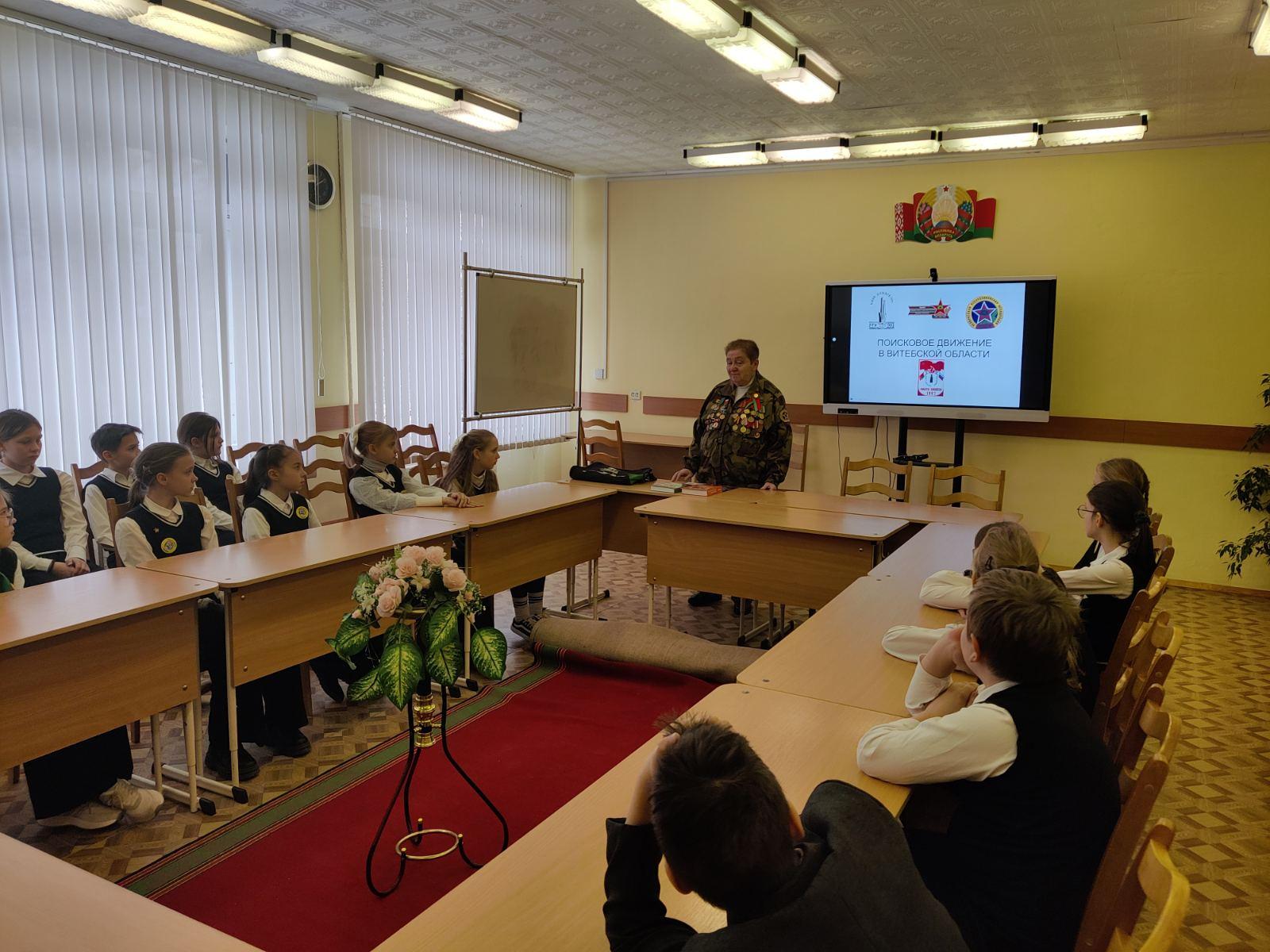 ✅В рамках месячника патриотического воспитания 14 февраля 2025 года для учащихся средней школы №30 г.Витебска имени М.И.Маценко прошел Урок мужества с участием председателя Совета по взаимодействию поисковых отрядов Бруевой Л.Н.