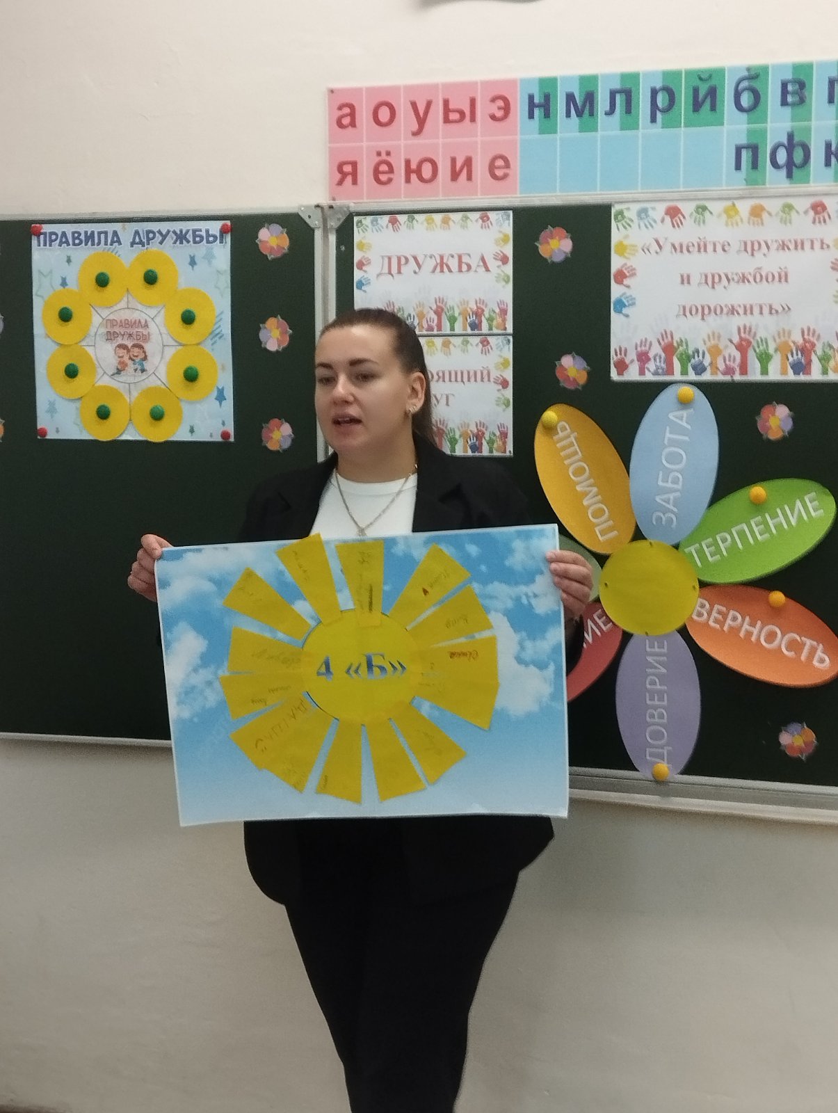 Рамках панорамы творчества участников инновационного проекта «От идеи к воплощению» с учащимися 4 б класса проведен классный час «Умей дружить и дружбой дорожить»
