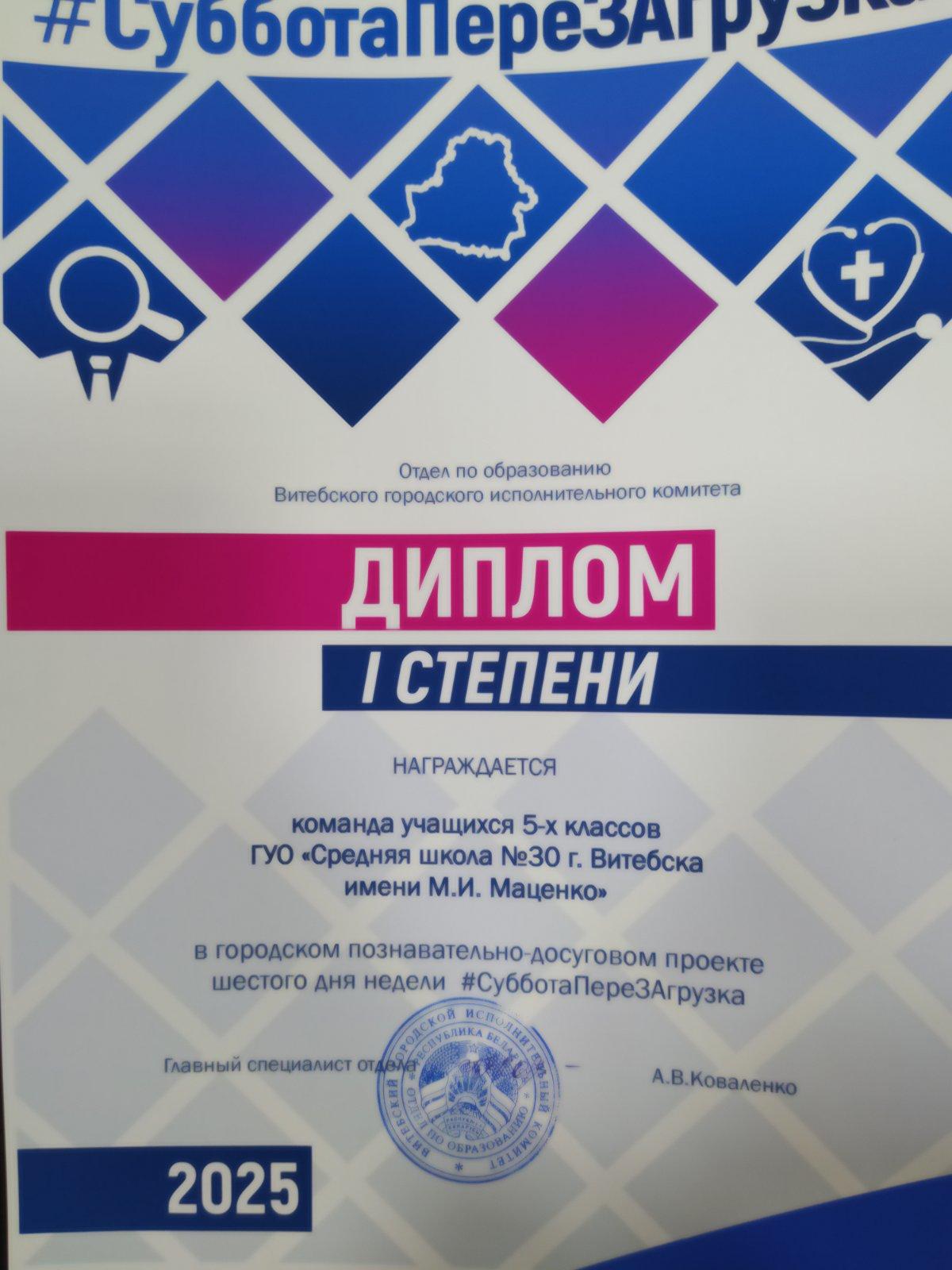 Учащиеся 5 б класса в учебном году участвовали в городском проекте Суббота ПереЗАгрузка. По итогам трёх игр среди школ города команда завоевала диплом 1 степени