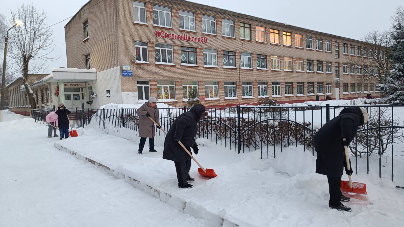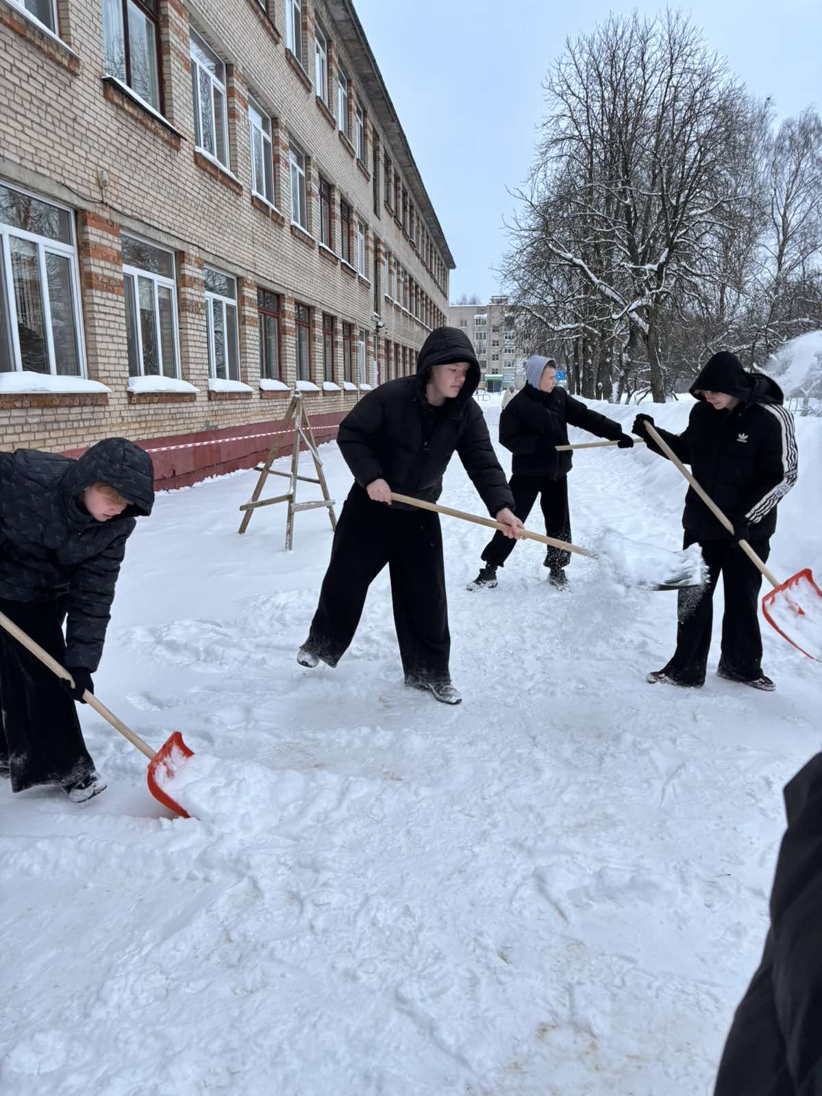 Учащиеся и педагогические работники присоединились к акции по уборке школьной территории от снега