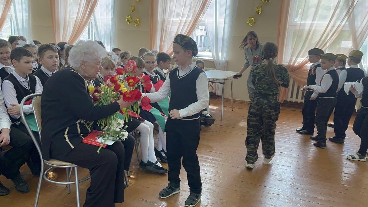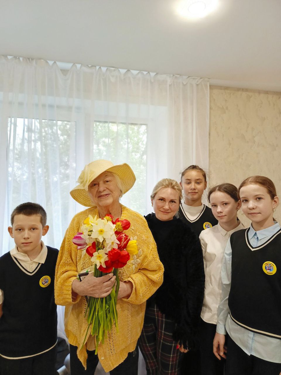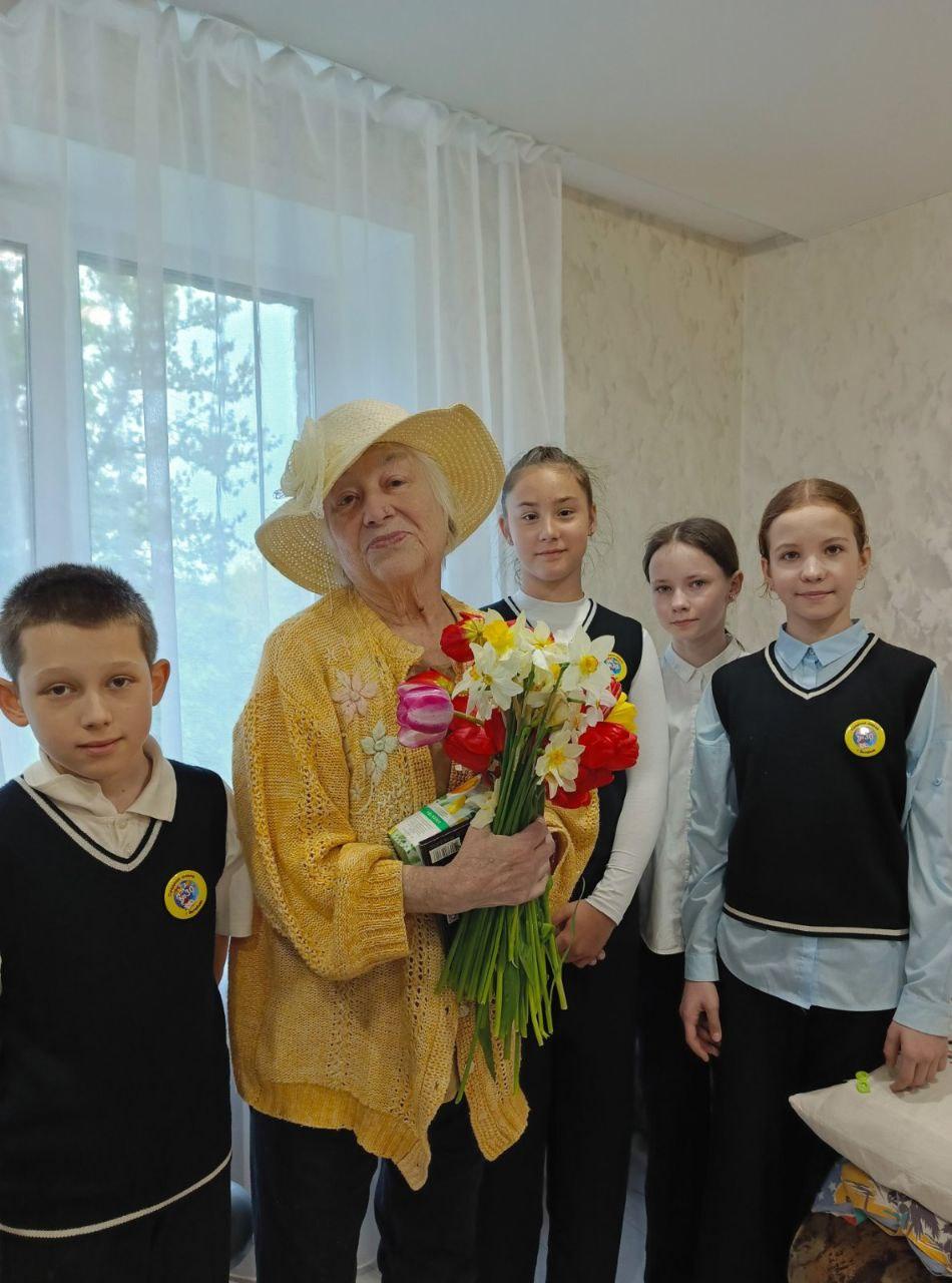 🌹 Поздравление с 80-летием Победы в Великой Отечественной войне, цветы, памятные подарки школьники и учителя подготовили и вручили ветеранам, малолетним узникам Граковой Н.Ф.. Лазаренко Е.Г., Мезенцеву В.И., Булычевой Р.А., высказав немало теплых слов в связи с предстоящим Днём Победы✨