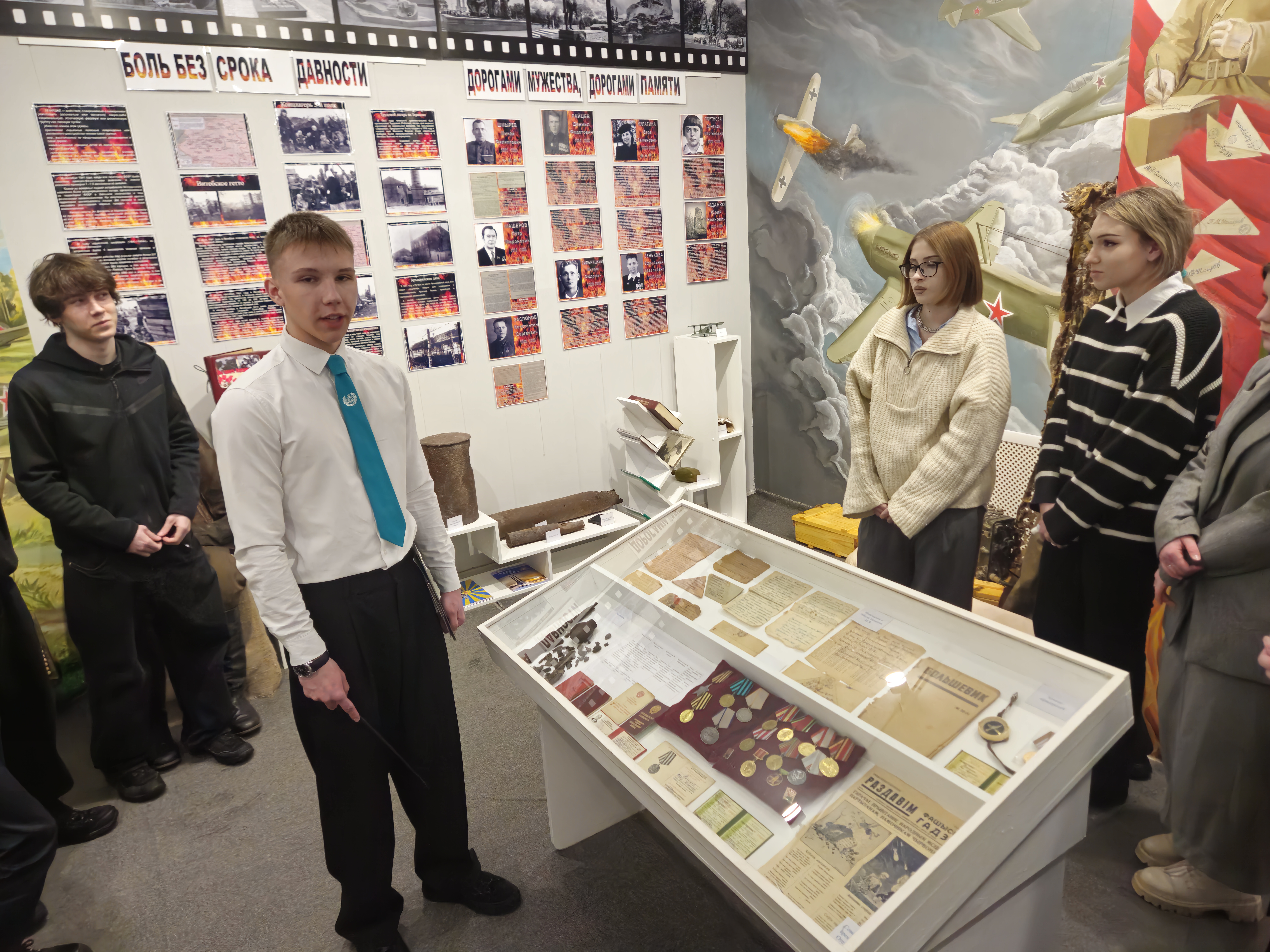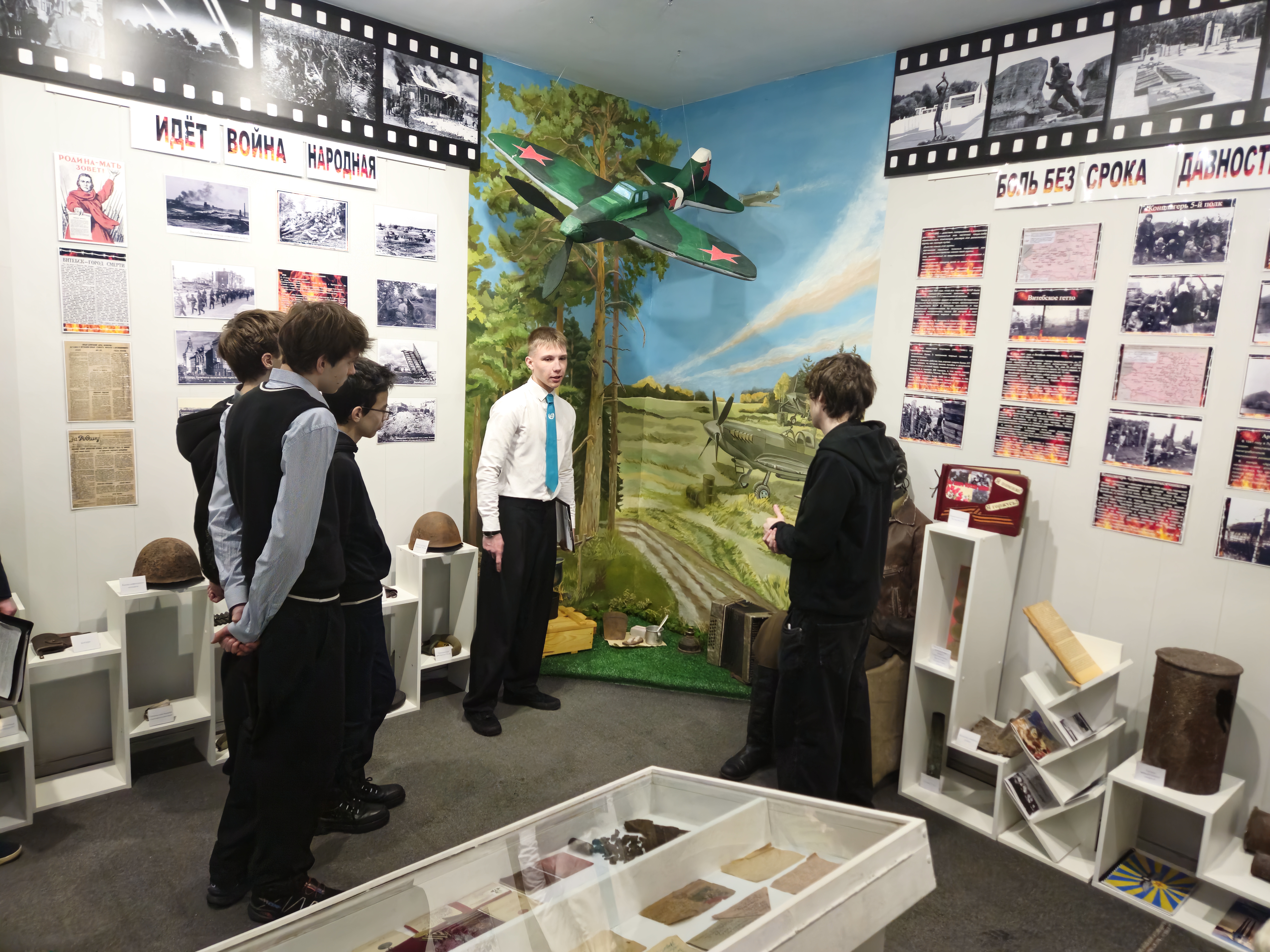 В роли экскурсоводов — учащиеся 11 класса школы. Посещали учащиеся 10 класса в рамках мероприятий Месяца патриотического воспитания