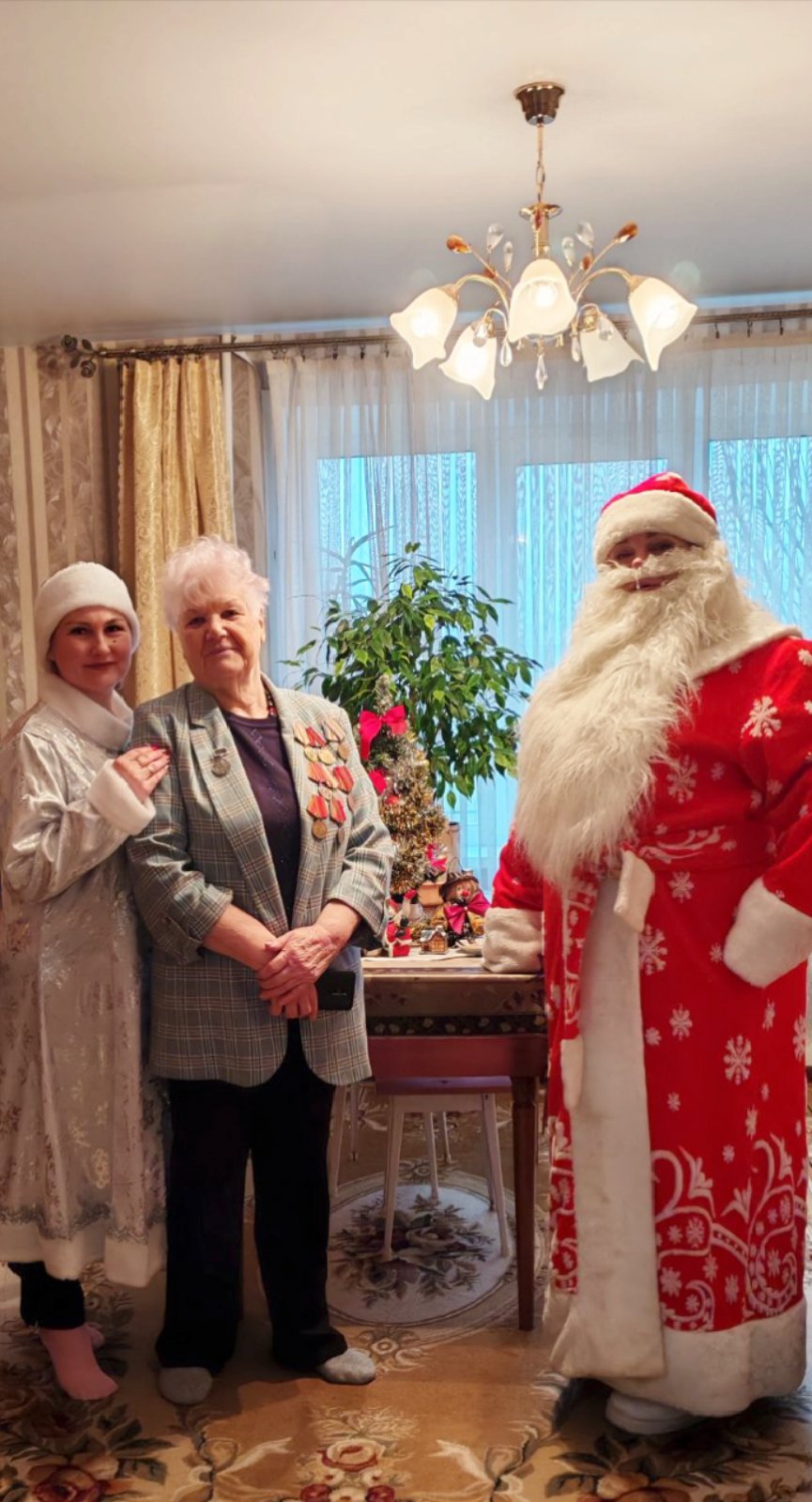 🎉Ветеранам особенно понравилось волшебное поздравление от Деда Мороза и Снегурочки. 🎅❄️ Пожилым людям в торжественной обстановке были вручены памятные подарки от членов профсоюзной организации.
