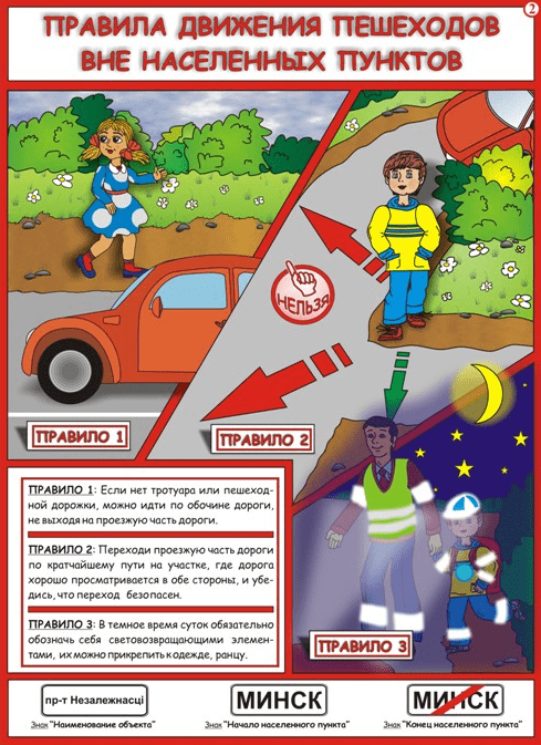 • При движении по краю проезжей части или по обочине в темное время суток, необходимо иметь на одежде светоотражающие полоски или фонарь в руке, чтобы водители могли видеть человека.