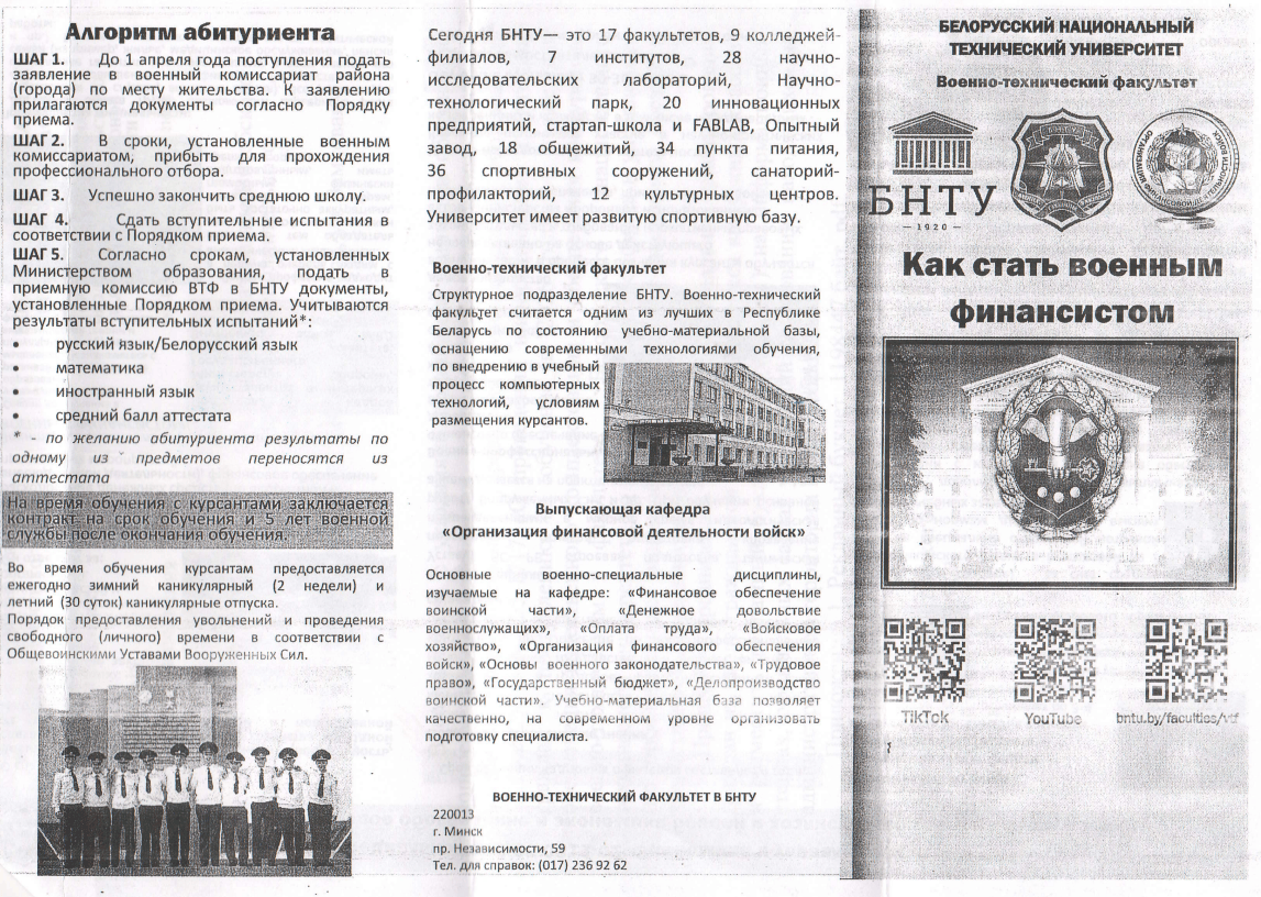 Профориентационная работа Как стать военным финансистом? Пошаговая инструкция Белорусский национальный технический университет