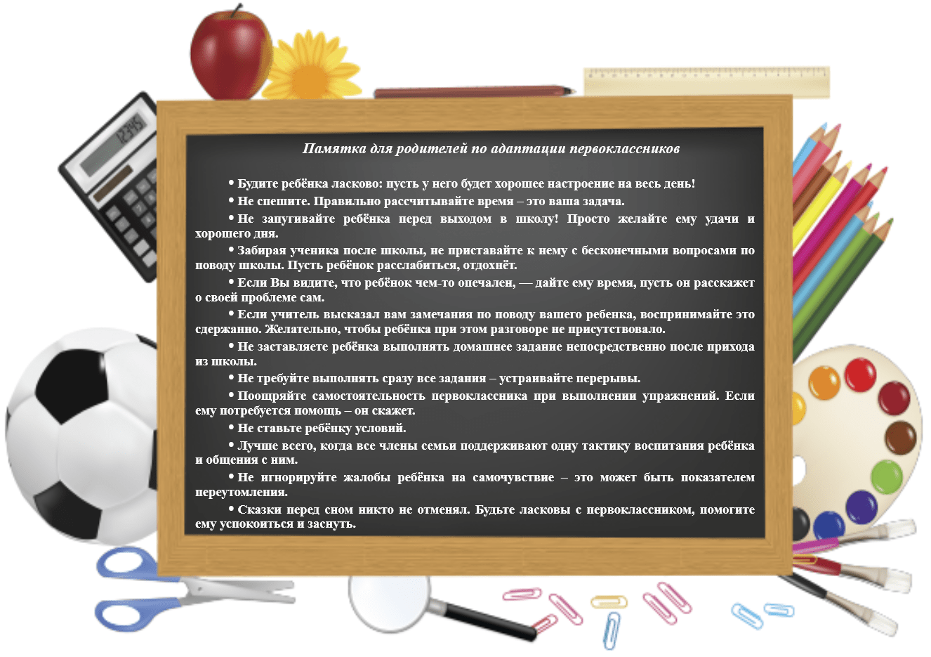 Памятка для законных представителей по адаптации первоклассников к школе