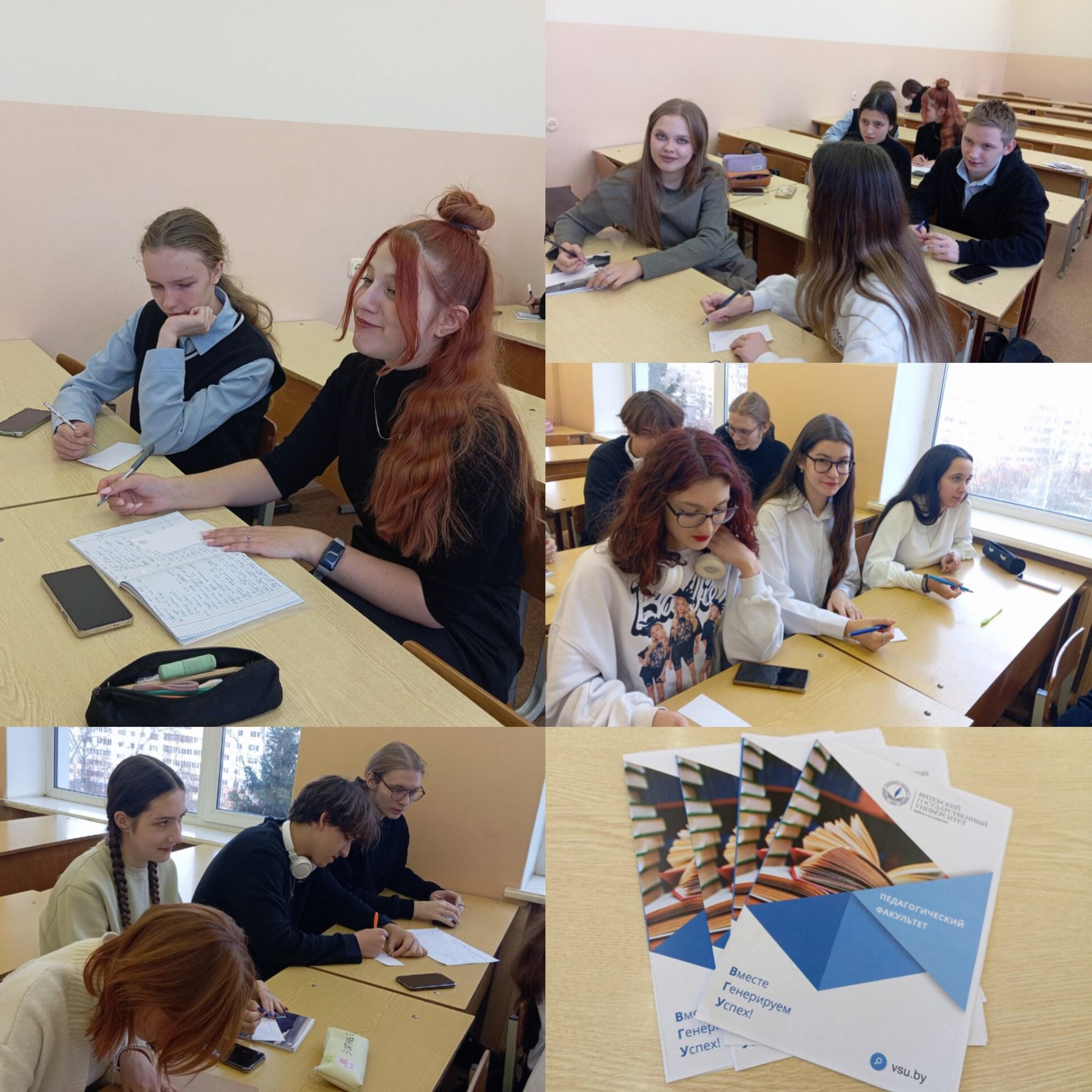 Учащиеся 10 и 11 класса в ВГУ имени П.М. Машерова на проекте «Студент на один день. ПФ» 26.11.2024 ← Вернуться к списку новостей Поделиться новостью: