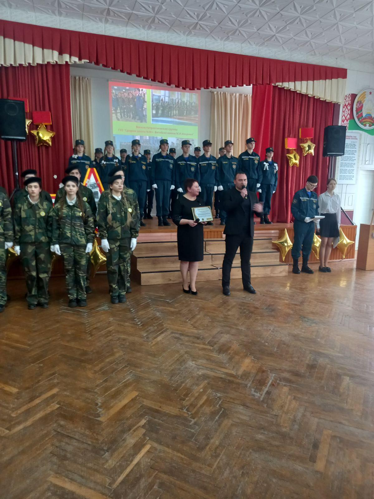 Учащиеся 10 класса приняли участие в закрытие месяца военно-патриотического воспитания, который прошел в 44 школе. Во время мероприятия учащиеся получили форму учащихся профильного класса