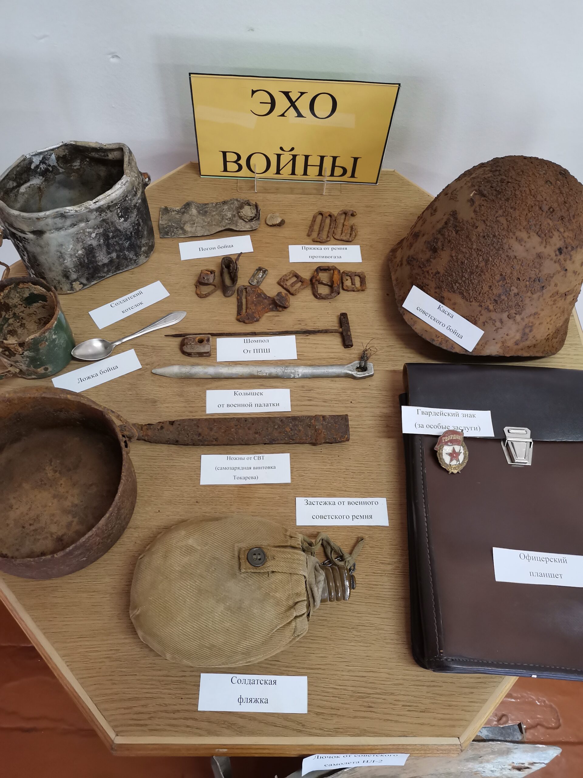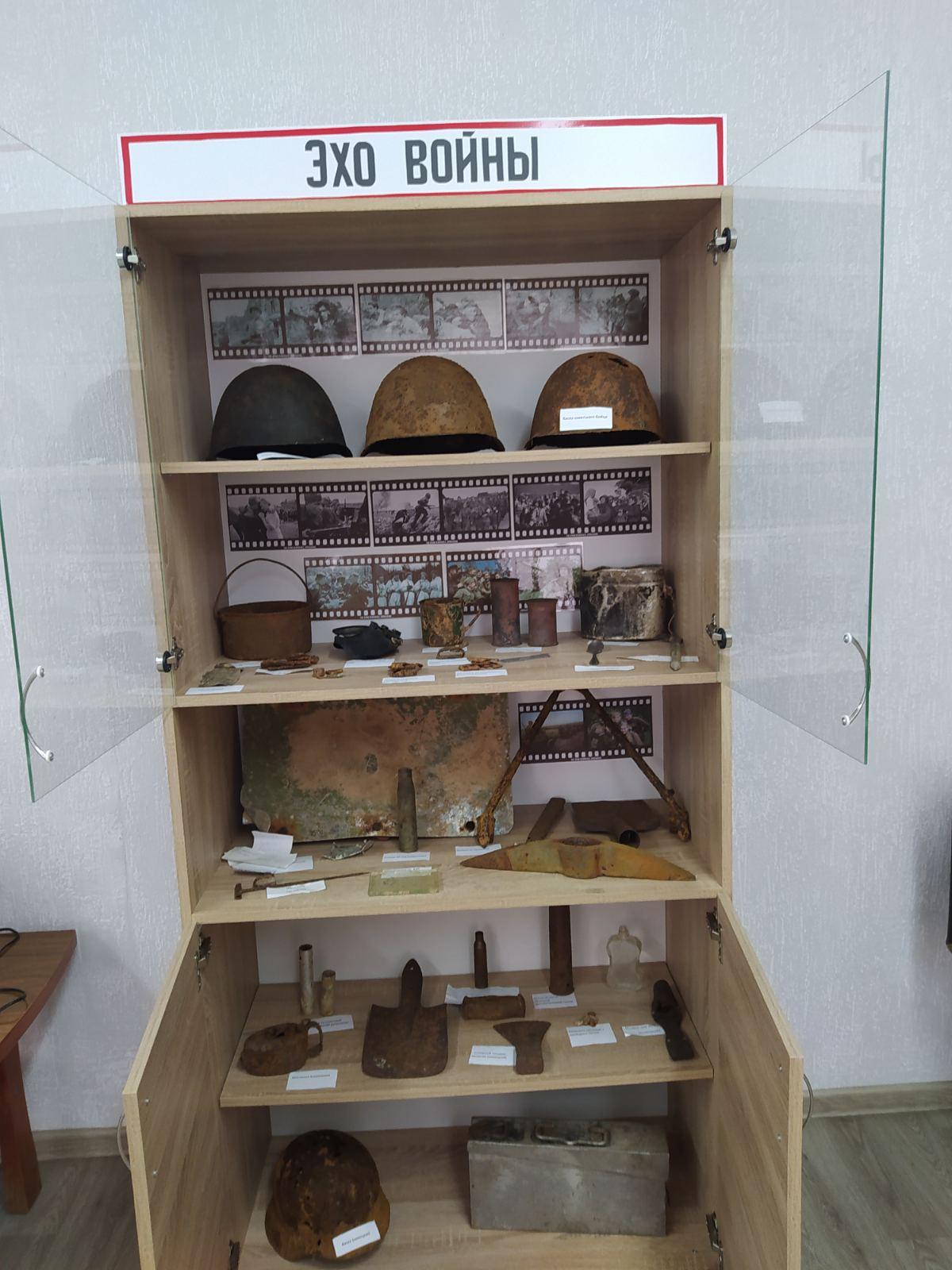 В рамках экспозиции организована выставка «Эхо войны», где представлены предметы военной археологии.