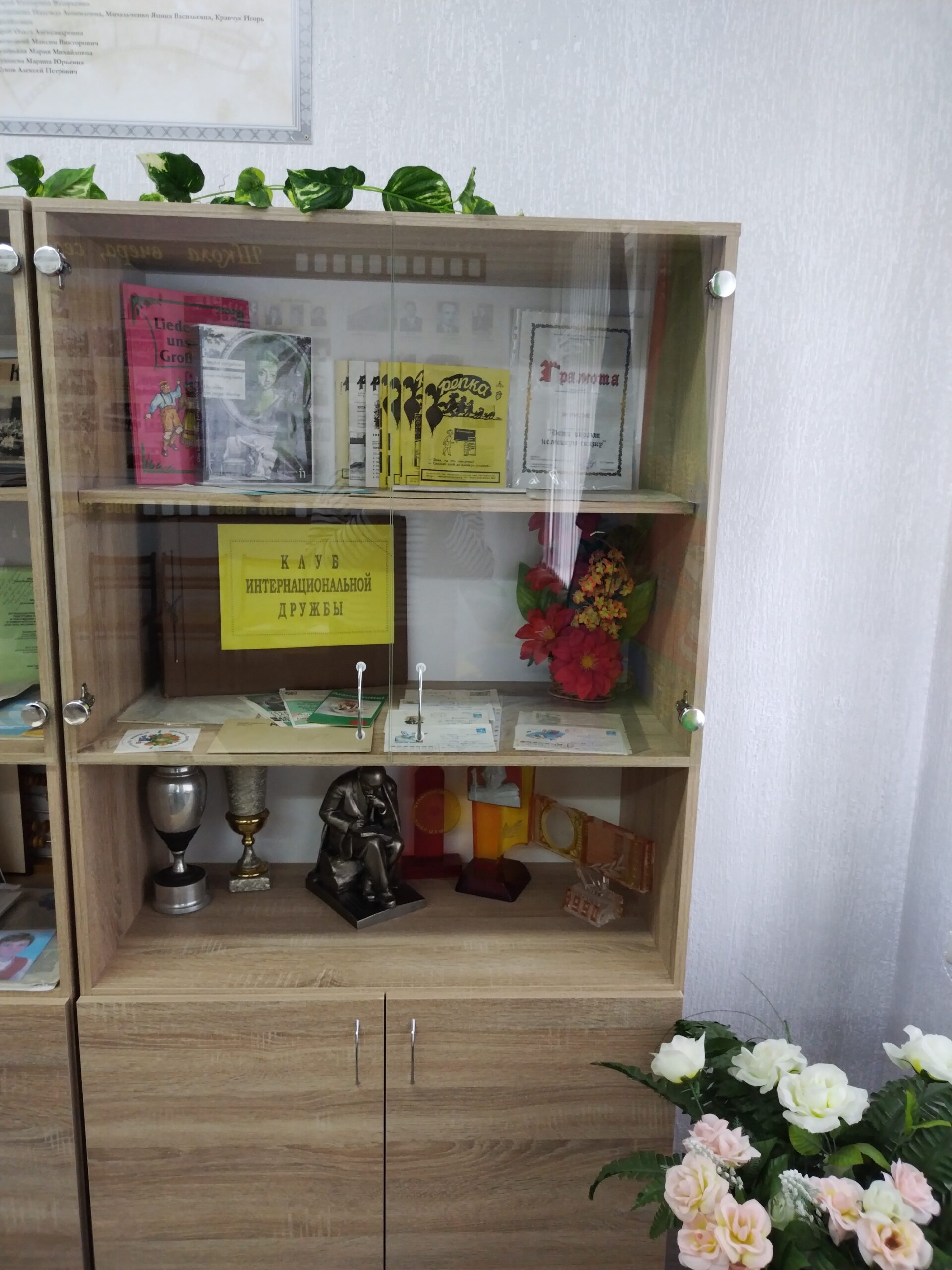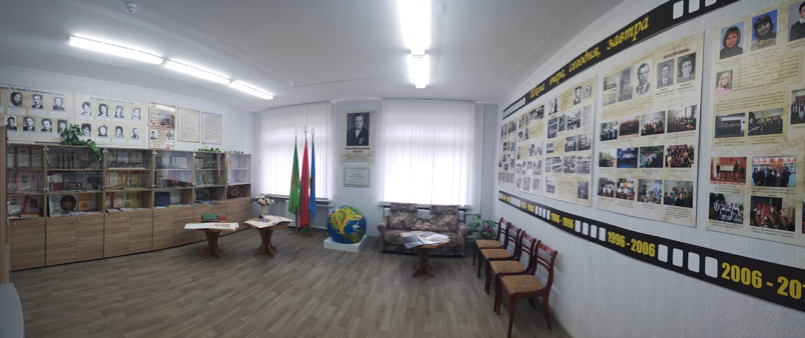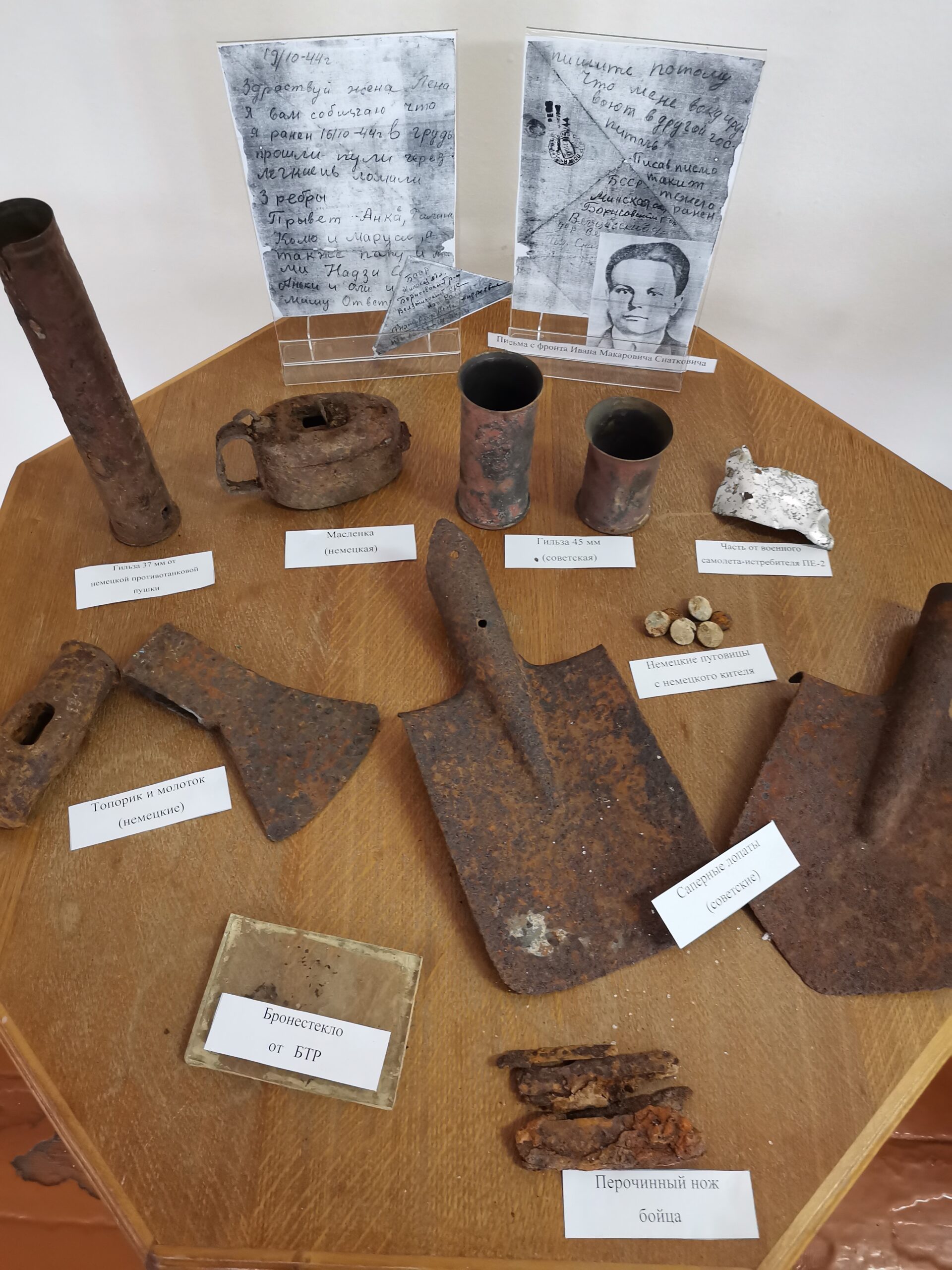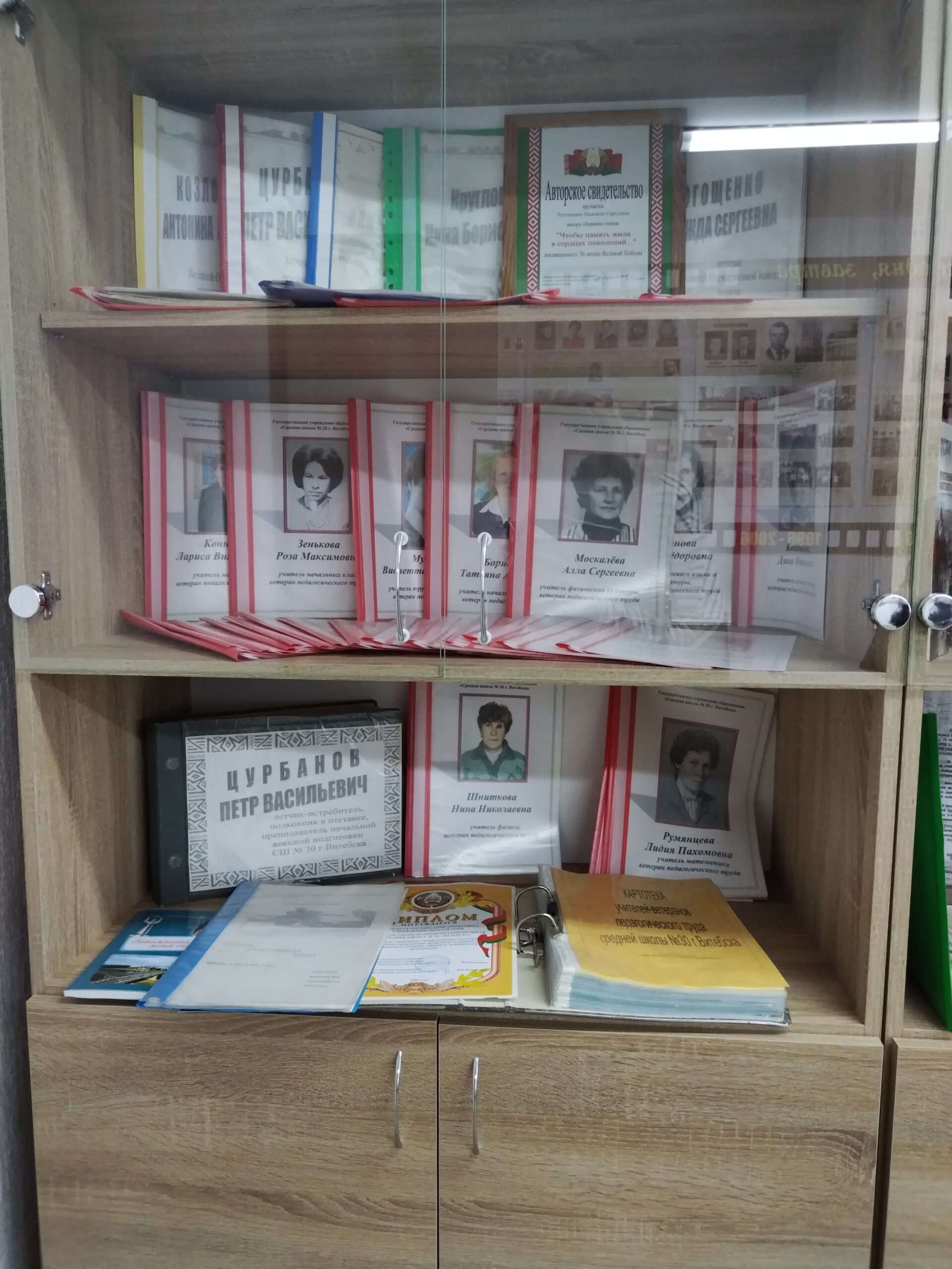 В музейной комнате находятся фотографии, документы, грамоты, кубки, альбомы, экспонаты, связанные с событиями Великой Отечественной войны.
