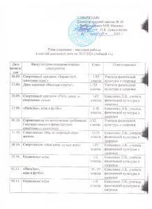 Спортивная жизнь План спортивно массовой работы в шестой школьный день на 2025/2026 учебный год Спортивный праздник «Путь к генералу»